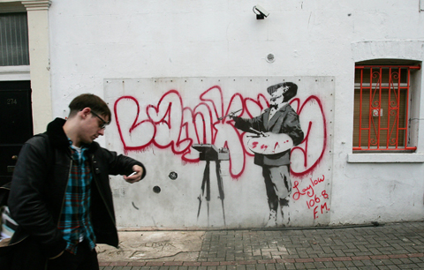 Banksy, originally from Bristol, western England, has attracted a global following with his graffiti paintings on the walls of London buildings. (STAFF WRITER, WITH AGENCIES)