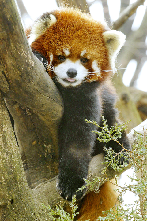 展望公園動物園管理員說,這隻逗人喜愛的小熊貓很貪玩,喜歡爬樹和探索牠的新家。 (美聯社�翻譯:楊鴻泰)