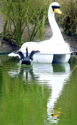 黑天鵝佩卓二OO六年開始迷戀上圖片中的這艘天鵝船,船在哪裡她就跟到哪裡,一點也不在乎遊客拍下她和她「配偶」的照片,她就是不肯離開這艘船。