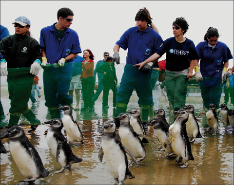 圍觀者在巴西南端看到這些小企鵝被放生回大海,且即刻就游走時,發出陣陣歡呼。這次是南美洲最大規模的企鵝放生行動。