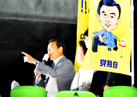 “I can cheer up when I come to Akihabara. I always feel at home here,” Aso said as supporters, mostly in their 20s and 30s, yelled in chorus: “Aso, Aso, Aso.”