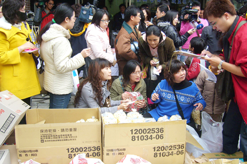 Liu Ching-hao, sales manager from group buying Web site Ihergo said that the lackluster economy has made people think hard about how they can save money, making online group buying suddenly very popular. Liu said that record amounts of people are visiting the Web site and that the site's takings have doubled. Chia Ching who sets up more than 60 group buys per month said: “Group buying is especially convenient for nuclear families. Not only do they not have to worry that their family isn't big enough to warrant buying certain items, but they can also get speciality dishes that don’t cost an arm and a leg.”