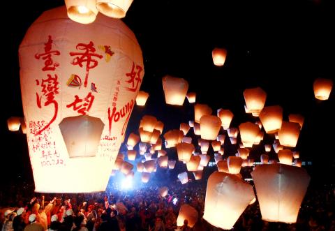 The 13th Pingsi Sky Lantern Festival this year, which is based on the theme of “Hope for Taiwan, Vitality in New Taipei City,” celebrates Taiwan’s centennial and New Taipei City’s promotion to special municipality status. To mark these events, renowned calligrapher Chang Ping-huang has been invited to write auspicious Chinese characters on lanterns.