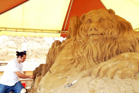 Taking advantage of the good weather, sand-sculp-ting teams from all over the world rushed to complete their work before May 1. Visitors to Fulong Beach said they were very lucky to see the process that goes into the creation of a sand sculpture, and they were amazed at how skillful the sculptors are.