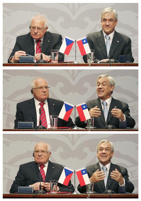 The clip in which Klaus secretly pockets an expensive pen at a joint press conference with his Chilean counterpart Sebastian Pinera was first broadcast by Czech public television on April 10.
