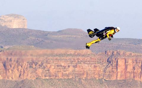 主辦單位五月十日聲稱,一位瑞士冒險家終於創下了使用噴氣背囊飛越大峽谷的歷史性創舉。此聲明是在這位冒險家,以訓練不足為由取消數天前的飛行之後。