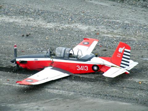 Two-seater T-34 training aircraft no. 3413 of the Air Force Academy experienced an engine failure last Sunday during a routine training flight, and was forced to make an emergency landing on the riverbed in the Kaoping River. Flight instructor Colonel Lai Wen-yu and the pilot, Second Lieutenant Chen Hou-chun, landed safely. The Air Force authorities immediately sent an investigative taskforce to handle the issue, and ordered all aircraft of the same model to be grounded.