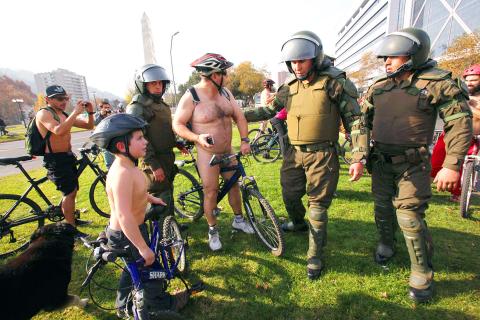 七位單車騎士於六月十一日,在智利首度上演的全球性「裸騎單車」活動,因「違反社會道德風俗」而被逮捕。