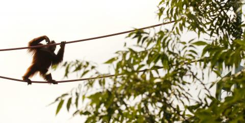 大概在地震來前十秒鐘,許多園內包含紅毛猩猩與大猩猩等猿類,「丟下食物,並且爬上展區內樹狀攀岩架的頂端。」