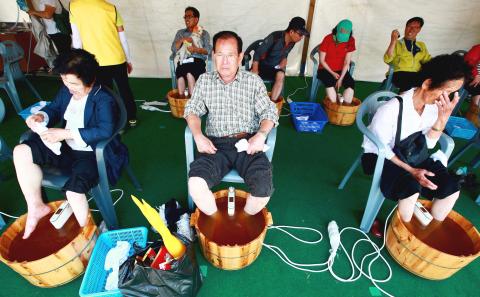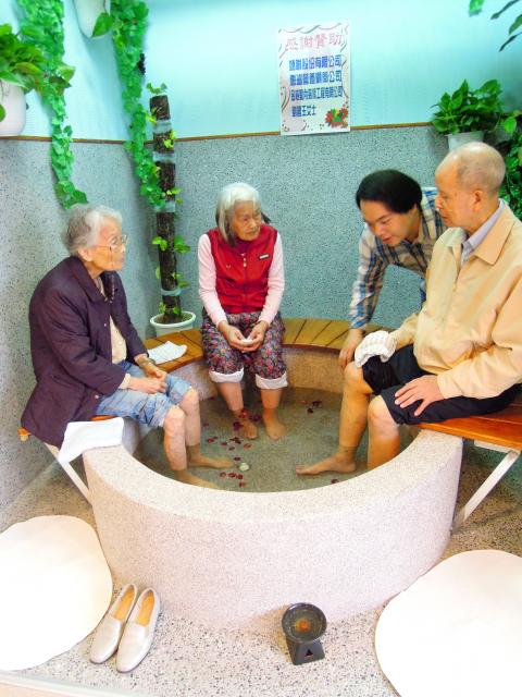 Juan Ying-hsu, a doctor of Chinese medicine at Buddhist Tzu Chi General Hospital’s Dalin Branch in Chiayi County, says that the feet are sometimes considered to be a “second heart.” He also says that taking a warm footbath can help circulate blood in the body, improve the endocrine system, enhance organ function and decrease the risk of high blood pressure and stroke.