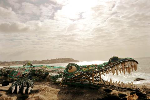 事實上,這兩人並不以為意,還繼續在此一潟湖裡游泳。