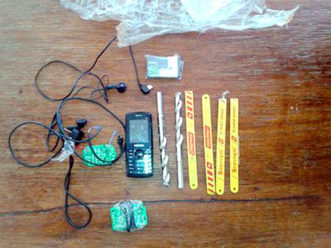 The confiscated items included drill bits, a memory card, a mobile phone, a charger and batteries, plus earphones.