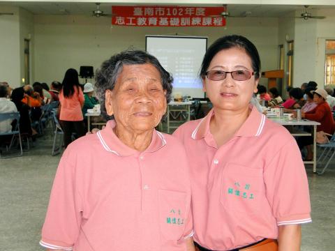 Last week the Tainan City Government organized an educational training course about volunteering in Hsiaying District, inviting experts to talk about skills used when serving as a volunteer. Many volunteers from care centers in Siaying, Liouchia and Liouying registered and attended the event. Attracting the most attention, however, was “elder volunteer” Ho.