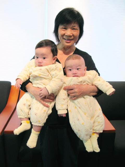 Chao Hsiang-chen, a 63-year-old employee at the Taipei Water Department’s Customer Service Center, and her 64-year-old husband never planned on having children. After family and friends suggested it to them two years ago, they decided to give it a shot, but never expected to she would actually get pregnant. At the ripe old age of 62, Chao gave birth to twins — a boy and a girl (dragon-and-pheonix twins in Chinese) — at the end of last year. With a smile on her face she says, “They are the most precious gift that God has ever given me.” She does, however, regret having kids so late in life and would like to encourage women to have children earlier in life.