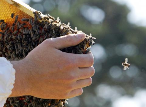 Miaoli District Agricultural Research and Extension Station researchers Sung I-hsin and Wu Heui-hu say that not enough domestic honey is being produced to meet market demand, especially since production was cut in half this year, making it highly difficult to find pure Taiwanese honey at hypermarkets and supermarkets. They say that purchasing it directly from beekeepers would be the best way to get it. Taiwan Beekeepers Association chairman Wu Chao-sheng also says that domestically produced honey with certified labels is only sold at the Matsusei grocery store chain. While in the past there were a lot of fake honeys being sold, now food processing companies are buying pure honey from beekeepers and adding other ingredients, but he says that they should label the contents accurately.
