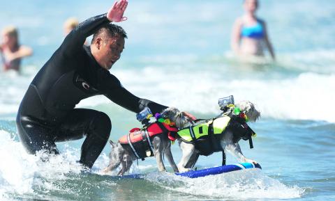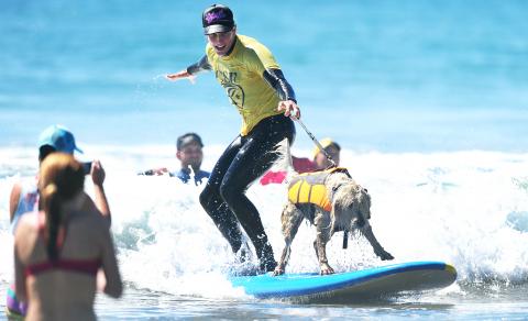 加州曾舉辦狗兒衝浪賽幫當地收容所募款,還有好幾個網站致力於這項運動,包括讓讀者交換訓練狗兒愛上衝浪運動的論壇討論區。