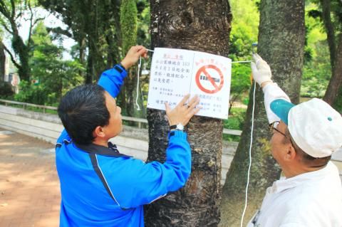 The district office says that the Forest Recreation Area contains many rare tree species. Completely prohibiting smoking is in accordance with the government policy, the office says, adding that there are also fears that cigarette butts might cause fires, which is why there are not any designated smoking areas in the area. The office says that hopefully people visiting the area will do their best to enjoy the phytoncides and cast aside their cigarettes. With regard to people’s complaints that not having smoking areas is inhumane, the office says that it will look into the possibility of setting up smoking areas near the ticket office. The park also says that if tourists are caught smoking in non-smoking areas, they will receive fines of between NT$2,000 and NT$10,000.