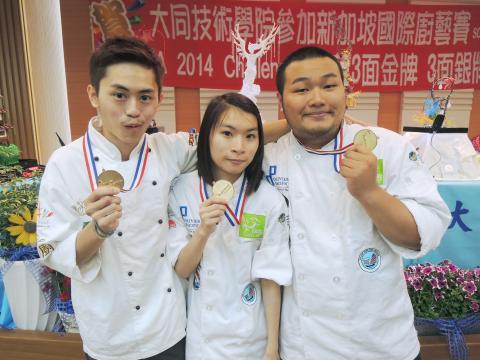 Singapore’s FHA Culinary Challenge is held every two years. It is Asia’s largest culinary competition. More than 800 contestants from 15 countries competed in the event this year. At the previous competition two years ago, Hungkuang University took two silver and two bronze medals home. During winter break this year the students underwent group training, which apparently paid off — they took home three gold, one silver and two bronze medals this year.
