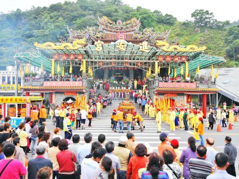 The birthday of the sea goddess Matsu, which falls on the 23rd day of the third month on the lunar calendar, was celebrated on Tuesday last week, as followers poured in to Matsu temples throughout the nation. Fusing Temple, which is devoted to Matsu, in Greater Taichung’s Dali District joined Datun District’s Matsu pilgrimage event for 18 villages. Wanhe Temple in Nantun District and Dajia District’s Jenn Lann Temple held a lively rite consisting of three offerings (sanxianli) on Tuesday last week.