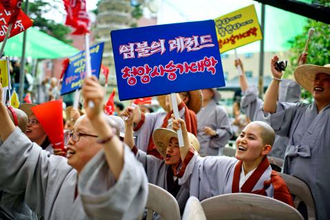南韓最大佛教組織上週四舉行實驗性「誦經比賽」,饒舌比丘尼與說唱比丘成為全場焦點,目的是為了吸引新進年輕信徒。