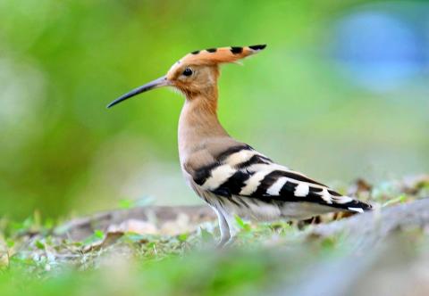 The hoopoe belongs to the Upupidae family, which, in terms of animal taxonomy, belongs in the Coraciiformes order. There are only two birds in the genus, the hoopoe and the Saint Helena hoopoe (Upupa antaios), also known as the Saint Helena giant hoopoe or giant hoopoe. Their main habitats are in Europe, Asia and northern Africa. The bird also has a wide presence in China, but in Taiwan it is a rare migratory bird that nests in coastal wetlands.
