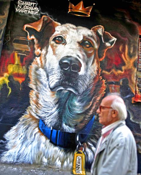 這隻流浪犬二0一一年常常現身示威陣營,在催淚瓦斯與汽油彈漫天飛舞的混亂中,對著警察吠叫,因而成為媒體焦點與民眾寵兒。