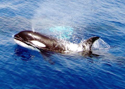 On the afternoon of Jan. 3 in Wanlitung on the Hengchun peninsula, a local woman surnamed Hung spotted, around 1km off the coast, four columns of water spraying up in succession from the surface of the sea. She initially thought it was dolphins, but at no point did she see them jumping up out of the water, and apparently dolphins cannot spray water three meters into the air. She quickly picked up her handset and took some photos, and many residents rushed out to the coast to witness the wonderful sight.