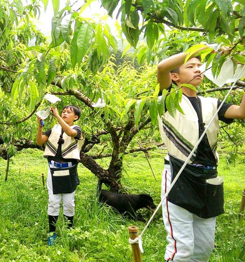 Shun Murasaki, an elderly Japanese man who is now 83 years old, was born in Taiwan, where his father served as a Japanese colonial police officer in Sanguang Village in what is now Taoyuan’s Fusing District. Three years ago he came back to visit the village, where he formed a close bond with Sanguang Elementary School’s Atayal traditional choral group. On several occasions he has invited the students to go to Japan for exchange activities with elementary schools in Japan’s Tokushima Prefecture. To make it possible for the students’ dream to come true, Sanguang school principal Wuu Hong-lin recently came to an understanding with peach farmers on a “work exchange” program, so that the students could earn money to cover their travel expenses through their own labor.