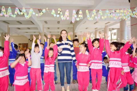 School Principal Lu Tsung-hsien said Su Ao Elementary School is not like urban schools that have plentiful English teaching resources. Also, students often have little opportunity to use English in a conversation with an actual foreigner. After Sammie arrived at the school, she used lively and interesting teaching methods that allow schoolchildren to play games and have fun while they study English, which is far more effective than just having the usual monotonous classes. During every weekly meeting, the school also arranges for Sammie to lead the students to read English together.