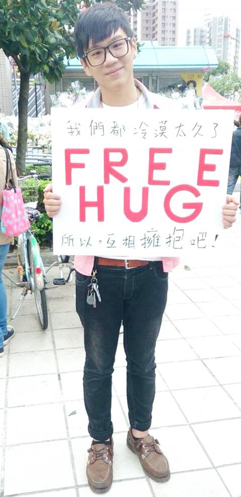 Following the mass murder incident committed by Cheng Chieh in Taipei’s MRT metro system in May last year, several members of the public undertook an initiative of free hugs at Jiangzicui Station in Banciao. Among them was Dai Lin, who held a poster that read, “We have all been apathetic for too long. Let’s give each other a hug.” With real actions, he and his friends brought back some warmth in society. Lin’s mother posted a picture of Lin offering free hugs to people by the MRT station on her Facebook page on Saturday last week and wrote ardently, “He was such a kind and passionate kid.”