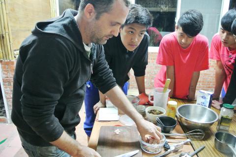French chef Guillaume Brissaud has stayed in Taiwan for eight years and married a Taiwanese woman. He sees Taiwan as his second home and runs a French restaurant in New Taipei City’s Sindian District. At the invitation of the Taiwan Fund for Children and Families, Brissaud visits Tranan Village in Wulai District every month to teach French cuisine to youngsters interested in cooking, by which he hopes that he can help disadvantaged youngsters living in remote areas to realize their dreams.
