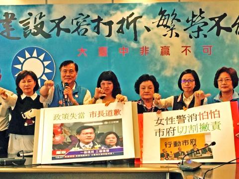 台中市消防局爆性侵醜聞。市議員楊正中、黃馨慧、吳瓊華等人十一月五日召開記者會為女性消防員發聲。