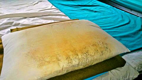 Green Party Taiwan Taoyuan City Councilor Xavier Wang has posted a picture of a dirty pillow on Facebook, saying that it was a military pillow shot by a friend of his when he was serving his short-term reserve training duty at the Armor Training Command And Armor School in Hsinchu County’s Hukou Township. The picture has provoked heated discussions among netizens. Having just offered help in a case involving Jian Chih-lung, a rookie soldier in a military police training center in Taoyuan who was infected with Leptospirosis and died as a result of sepsis, Wang asked, “How can rookie soldiers avoid getting sick in an environments of this sanitary standard? What’s the matter with the military?”