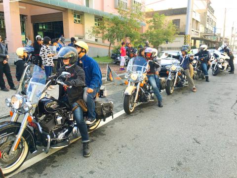 About 30 members of the Harley-Davidson Free Riders’ Team and the Yunlin Big Bike Association, coordinated by TFCF committee member Lee Mei-hui, arranged to visit the TFCF in Yunlin and spread some good vibes. When one of the students, “Xiao Lin” (not his real name), heard the rumble of the big bike engines, he said his heart was pounding and he felt really excited.
