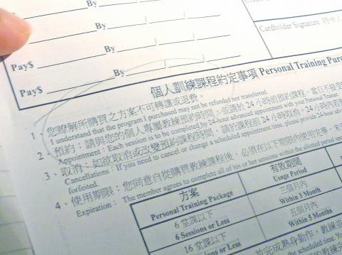 Consumer Protection Committee officer Wang Te-ming says that the committee has asked the gym operator to strictly restrain their trainers from selling inappropriate courses, to work out a maximum number of personal training courses that can be sold, to approve leave of absence in the presence of a diagnosis issued by a physician, to consider allowing gym members to change locations without charging a transfer fee after they have used the original location for a certain period of time and to improve customer service staff’s attitudes when dealing with complaints.