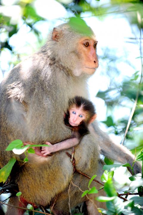 Within the monkey genus, there are 22 kinds of macaque, such as the Formosan macaque. The Formosan macaque, which appeared in Taiwan 170,000 years ago and is the only one that is unique to Taiwan, mainly lives in forests. Some can also be found in Japan, probably taken there by people who later abandoned them, or perhaps they escaped. They then bred in the wild, either among themselves or by mating with Japanese macaques.