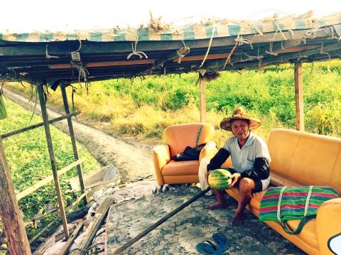 Affected by unusual weather conditions, this year there has been a large drop in the yield of many agricultural products, and watermelons are no exception. The market price has rocketed more than threefold, but this has also attracted the attention of thieves. In Changhua County’s Hemei Township, watermelons are already being harvested. Farmers have one after another erected melon sheds in the melon patches, parked trucks beside their fields or are even sleeping next to their watermelons with iron rods and wooden sticks at the ready: there’s a war on to protect farmers’ melons.