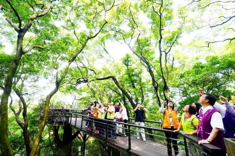 Following the inauguration of the first half of an all-age-friendly accessible hiking trail in Hutoushan ecological park, the 400-meter-long second half of the trail is expected to be completed by the end of September. Combined, the two sections will form a 1km-long loop trail. On July 11, Taoyuan Mayor Cheng Wen-tsang visited the park to inspect the construction. According to Cheng, in addition to the hiking trail, the government will build a car park, a storage room and toilets, while making sure there is stable phone reception in the park to increase the convenience for visitors.