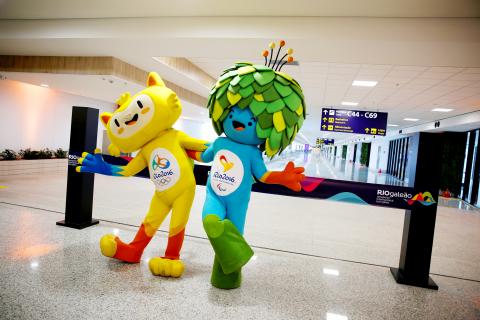 在經過三十二萬三千三百二十七人的線上投票決定後,奧運和帕運的吉祥物公布名字。奧運的吉祥物「費尼希斯」是一隻亮黃色動物,它代表的是巴西的野生動物。帕運的吉祥物「湯姆」則是以藍、綠為主色的植物,象徵的是主辦國廣大的雨林。