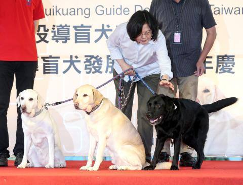 Tsai vowed to build more barrier-free facilities friendly to seeing eye dogs, so that more visually impaired people can take their dogs on public transport and to other public and business venues, without having to worry that their dogs will be barred entry.