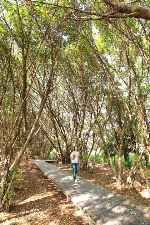While strolling through Tainan City’s “green lung,” Barclay Memorial Park, adorable squirrels appear as if from nowhere, scurrying back and forth along one of the park’s shady, tree-lined paths. Beside a path that runs along the water’s edge, several bald cypress trees nestle between the weeping willows. Moving further into the center of the park, one arrives at Dream Lake, a beautiful lake in miniature. Bald cypress trees line its banks, surrounding the lake on all sides, while sunlight reflects off the water’s surface to create an enchanting scene.