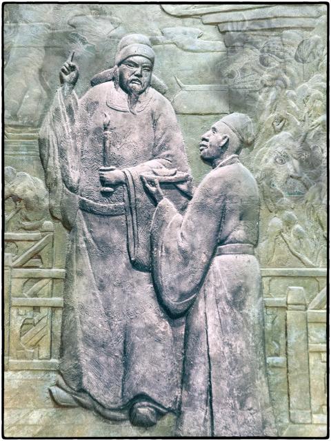 Wei was one of the major states during the Warring States, a period of political upheaval and weak central government, as was the state of Zhao. When the exchange below occurs, the “king” of Wei’s son is to be sent to Zhao to act as hostage guarantor for a treaty between the two states. Pang Cong, a senior Wei official, is to accompany the prince on his journey. He has no idea when he will return. He approaches the king, and asks him not to believe malicious rumors about him in his absence.