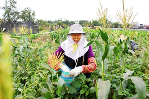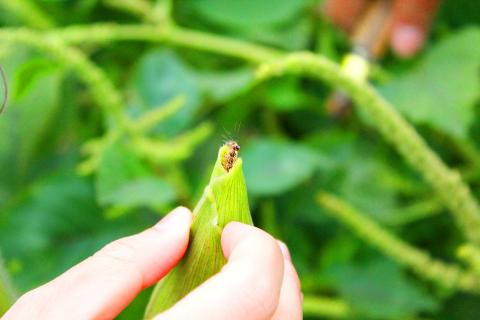 At the end of last year, in order to promote community development, Chen Fang-li, head of the Chenggong Community Development Association in Chiayi County’s Shueishang Township, came up with the idea of growing corn using toxin-free farming methods and discussed it with Chen Chung-yung, head of the Sanjie Village in Shueishang Township. He immediately agreed to the idea and offered a field of 80 square meters to use for free.