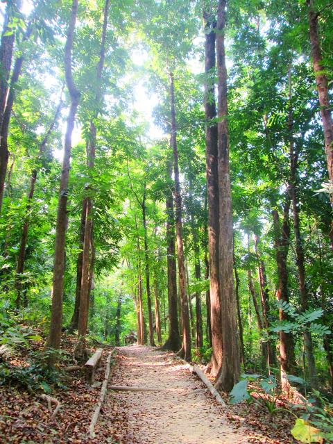 It is recommended to take the Big Tree Forest Path to ascend the mountain. Along the way you will pass through ***tropical*** forests of elephant apple trees and rain trees in addition to small bridges, tiny flowing streams and if you keep your eyes peeled, you may spot the charming sight of crawling hermit crabs.
