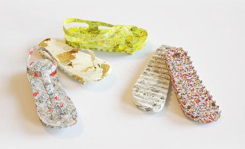 大葉大學設藝學院碩士生陳沂含利用3D繪圖開發設計出可換鞋底的「再生紙拖鞋」,獲得美國IDA國際設計大獎永續發展設計金獎及榮譽獎。