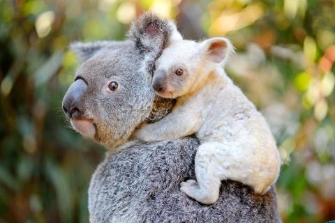 White koalas are extremely rare, and are at a distinct disadvantage if born in the wild, as they are more easily spotted by predators.
