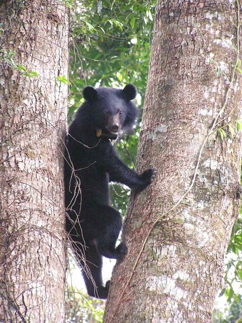 According to the director of National Pingtung University of Science and Technology’s Institute of Wildlife Conservation Hwang Mei-hsiu, Formosan black bears will not normally attack a human if unprovoked and says members of the public should not feel unduly concerned if they come across a Formosan black bear. When a female bear is accompanied by a cub, Hwang says she will be even more cautious and unless her cub’s safety is threatened during an extreme situation, she will normally take the first opportunity to remove her cub from danger. As for Huang’s situation, separated by the stream, Hwang says he did not need to worry.