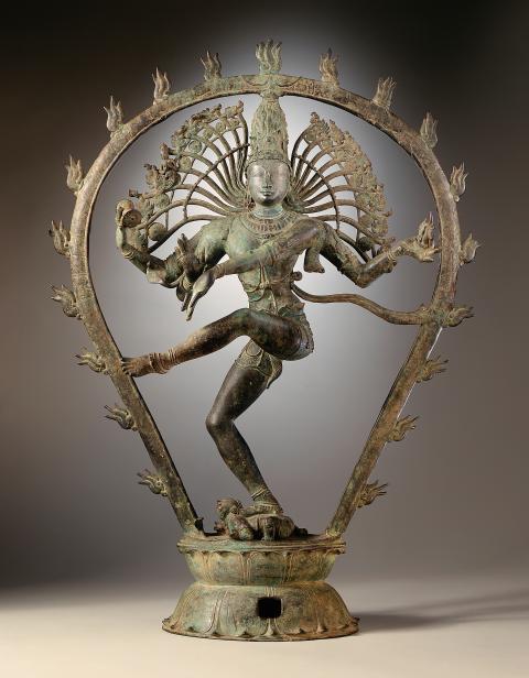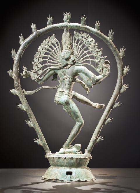 濕婆有許多種「相」,這件銅雕所呈現的是濕婆「舞蹈之王」相的典型作品。濕婆的舞蹈被稱為「宇宙之舞」,是運轉宇宙的動能──在跳舞的狂喜與狂怒中,宇宙灰飛煙滅、風雲再起。