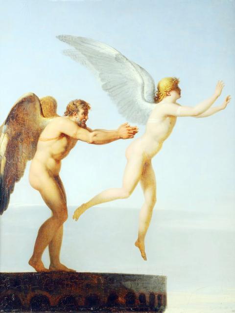 A Greek myth tells of how Daedalus, the inventor of the labyrinth that contained the Minotaur, tries to escape the island of Crete. He had been imprisoned, together with his son, Icarus, in the labyrinth, for offending King Minos. Knowing that they would be caught if they attempted to escape by sea, Daedalus makes wings of feathers bound by wax, and warns Icarus to follow him closely. He cautions him not to fly too close to the water — which would dampen the feathers and weigh down the wings — or too close to the sun, which would melt the wax binding the feathers. The young Icarus — impetuous, reckless and excitable — ignores his father’s warning and flies too close to the sun. His wings fall apart and he plunges to the sea below and drowns.