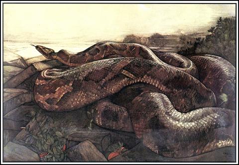 The 13th strategy in the sanshiliu ji (Thirty-six Strategems, see Using Idioms on May 14) is 打草驚蛇, literally to beat the grass to scare the snakes or, by extension, to inadvertently alert an enemy to one’s presence or one’s plans. The imagery is quite self-explanatory, of course. The idiom, thought to derive from a reference in the nantang jinshi (A Modern History of the Southern Tang Dynasty) written by Song Dynasty scholar Zheng Wenbao, is now generally used in a negative sentence, that is, “don’t beat the grass and alert the snake,” to mean to avoid any action that will alert others to what you are doing.
